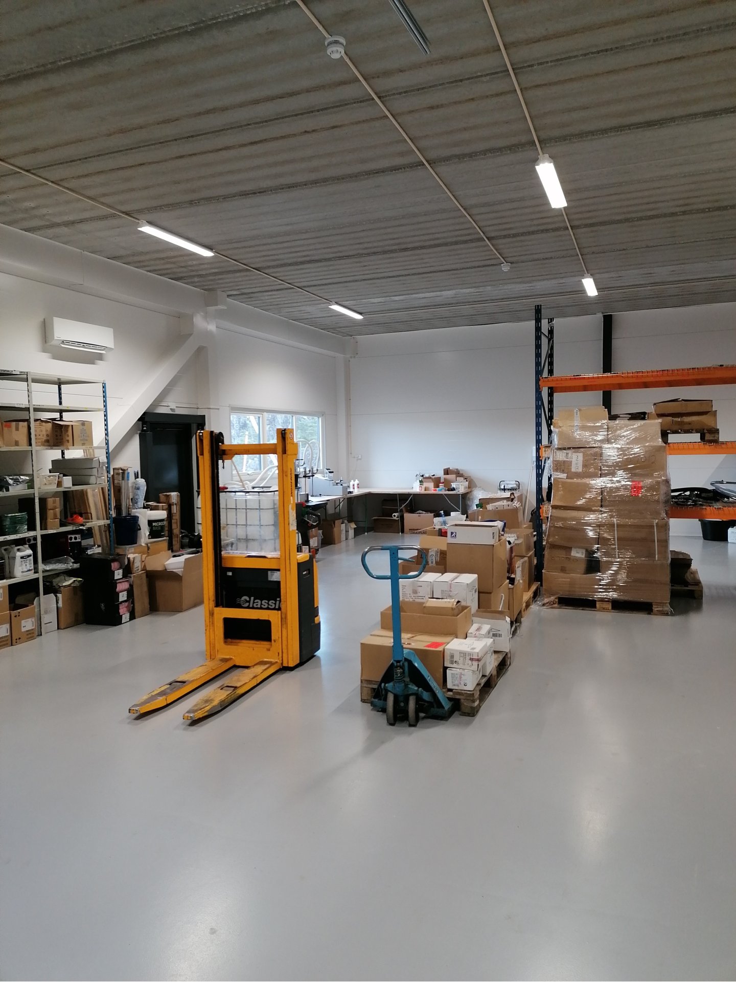Our third building is located in Askøy, a municipality outside Bergen. This 300 sq. metre section of a larger warehouse holds officespace for our trading business and space for production of chemicals and a small outlet for local customers.